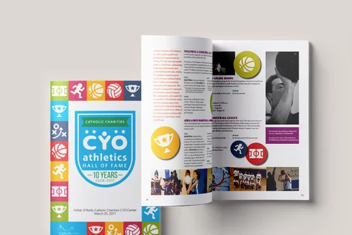 10th Anniversary redesign of event collateral for CYO Athletics Hall of Fame Dinner.